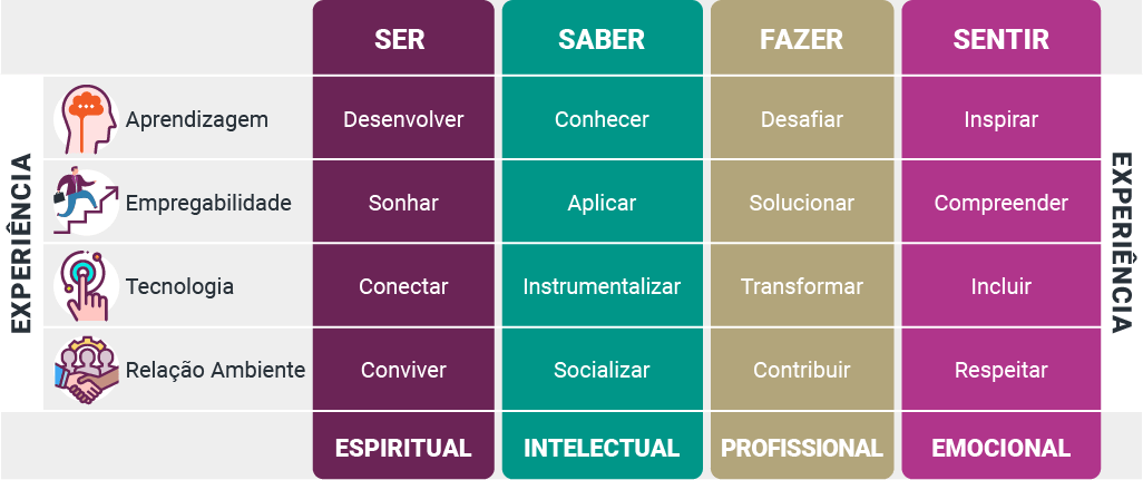 Com a análise da figura que segue, é possível compreender a relação entre os pilares e o desenvolvimento que se almeja para os estudantes: