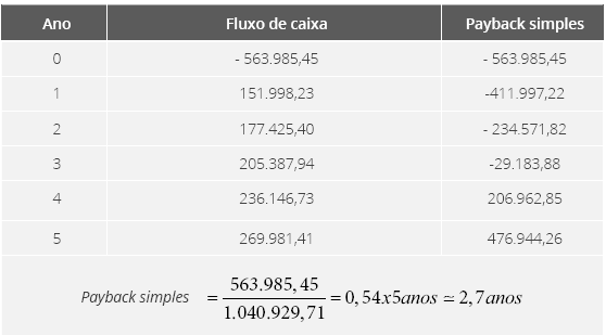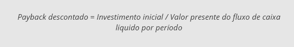 e calculado por meio da divisão do investimento inicial pelo fluxo de caixa líquido por