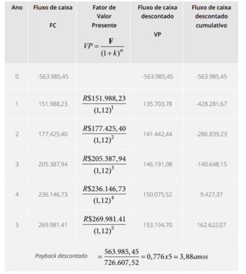 investimento, considerando o valor do dinheiro no tempo, a partir do custo de
