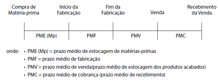 estocagem de matérias primas; prazo médio de fabricação; prazo médio de venda (prazo