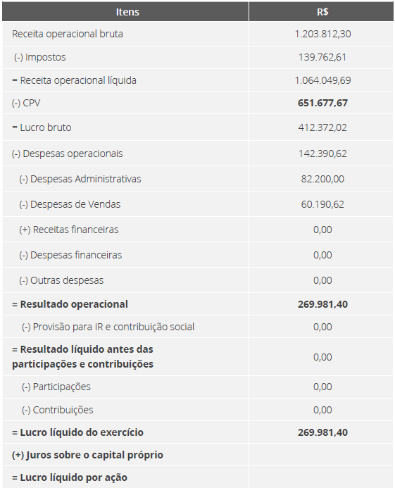 Da Receita Líquida, é deduzido o Custo da Mercadoria Vendida (CMV) — em empresas industriais —, ou o Custo da Mercadoria Vendida (CMV) — em empresas comerciais —, ou o Custo dos Serviços Prestados (CSP) — em empresas prestadoras de serviço — (MARTINS et al ., 2019). Após essa dedução, chega-se ao Lucro Bruto.